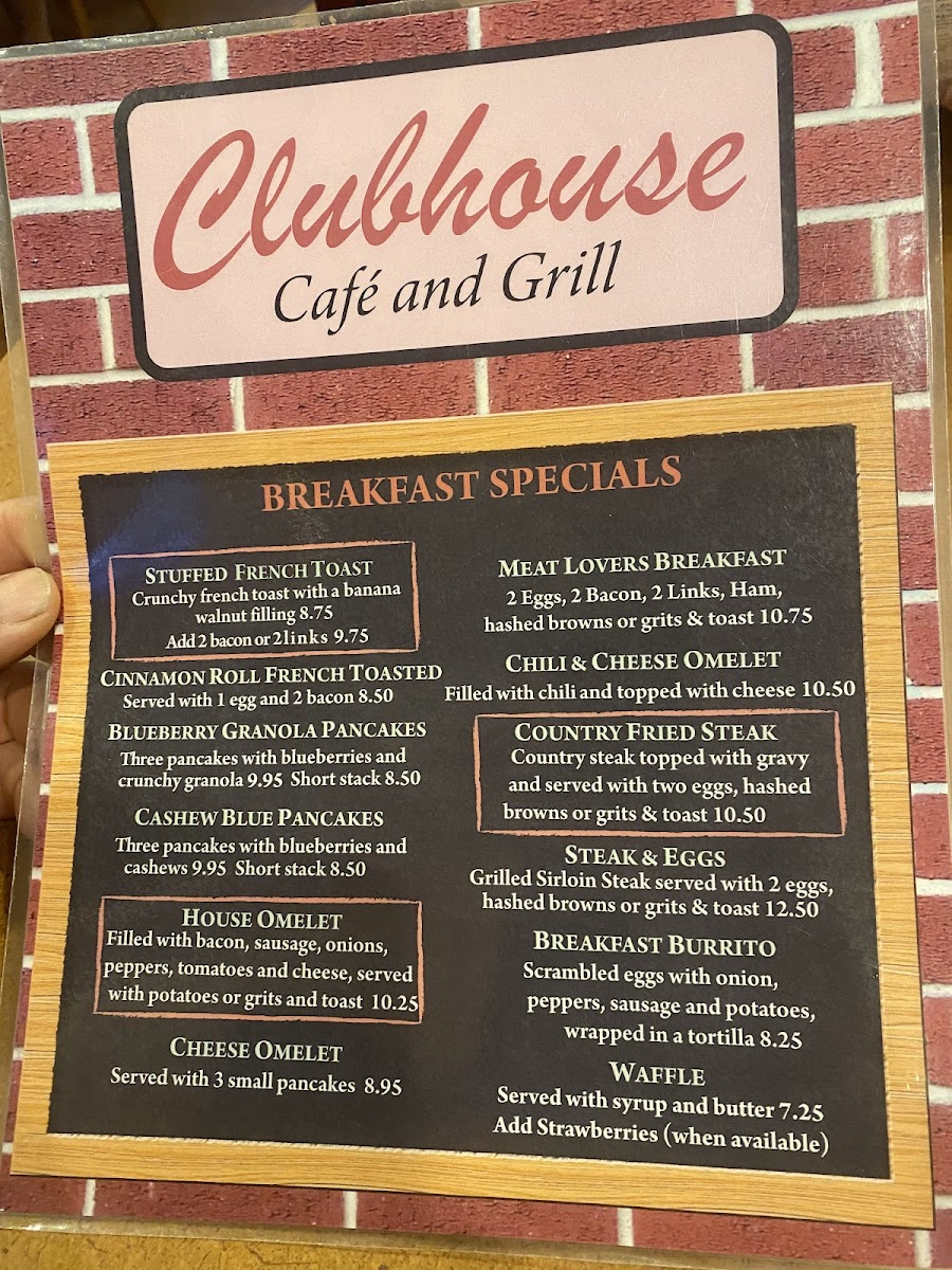 The menu at Clubhouse Restaurant offers a straightforward and comforting selection of classic American favorites, perfect for any time of day. Whether you’re stopping by for a leisurely breakfast or a casual lunch, you’ll find familiar dishes prepared with care and served in a relaxed, welcoming setting.