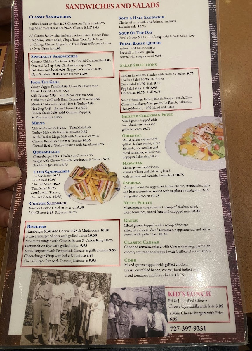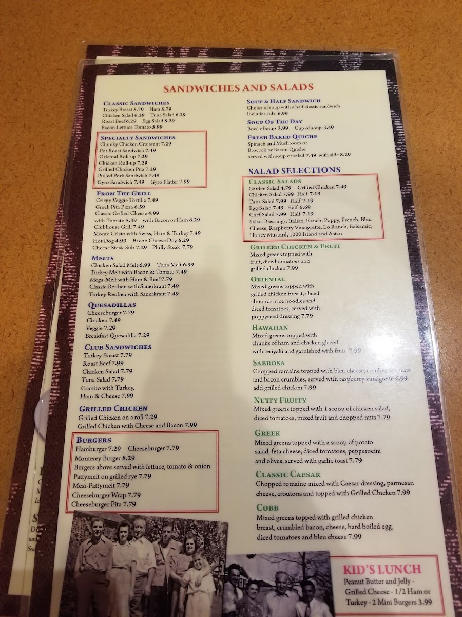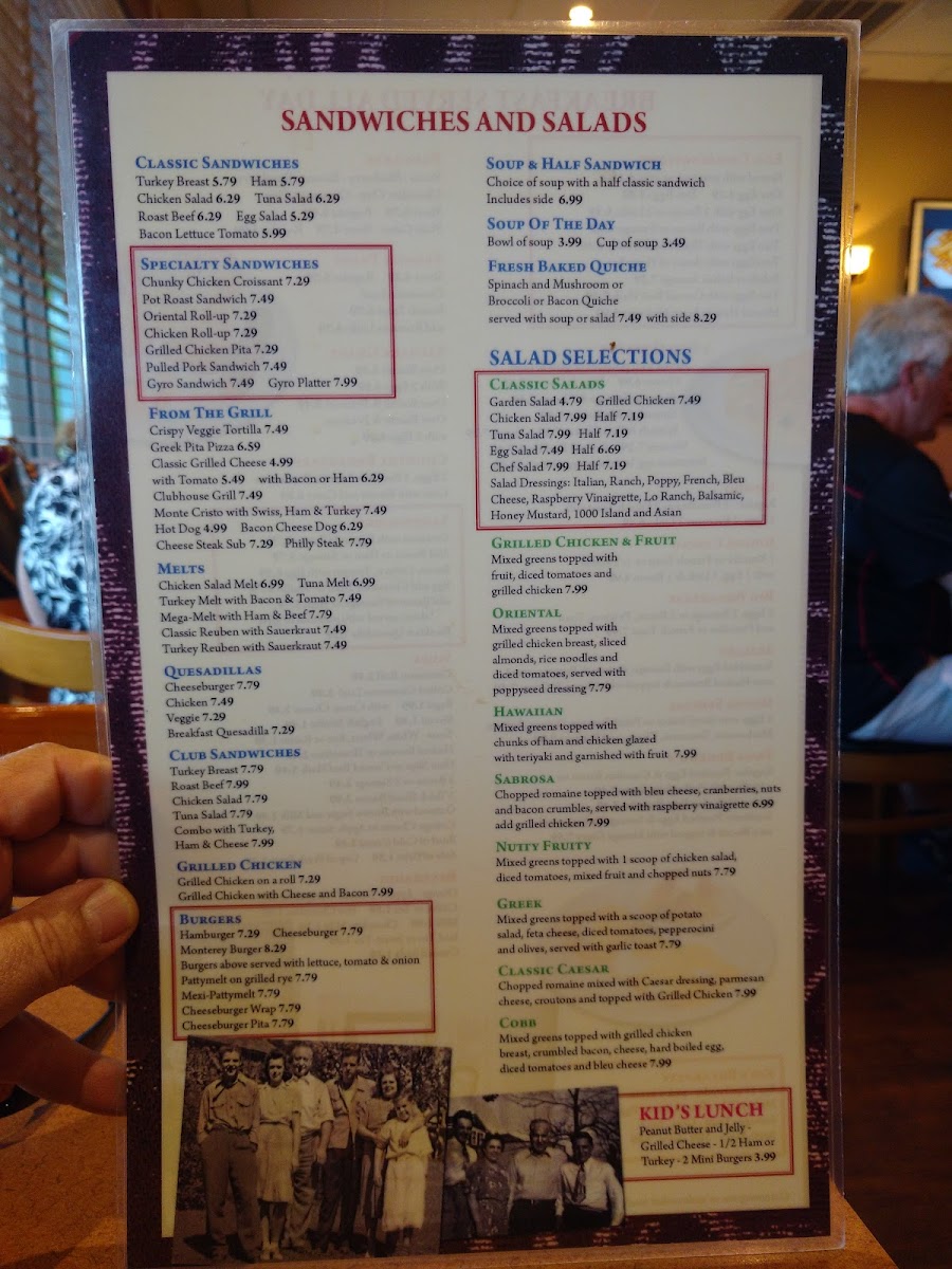 Breakfast is a highlight here, with hearty combos featuring pancakes, French toast, scrambled eggs, and bacon, all available throughout the day. Options like the Western omelette with American cheese or the house special with Polish sausage provide satisfying meals that fit well with the down-to-earth atmosphere. For lighter moments, choices such as the Cobb salad, Italian wedding soup, or fresh-baked quiche make for a simple yet fulfilling lunch.