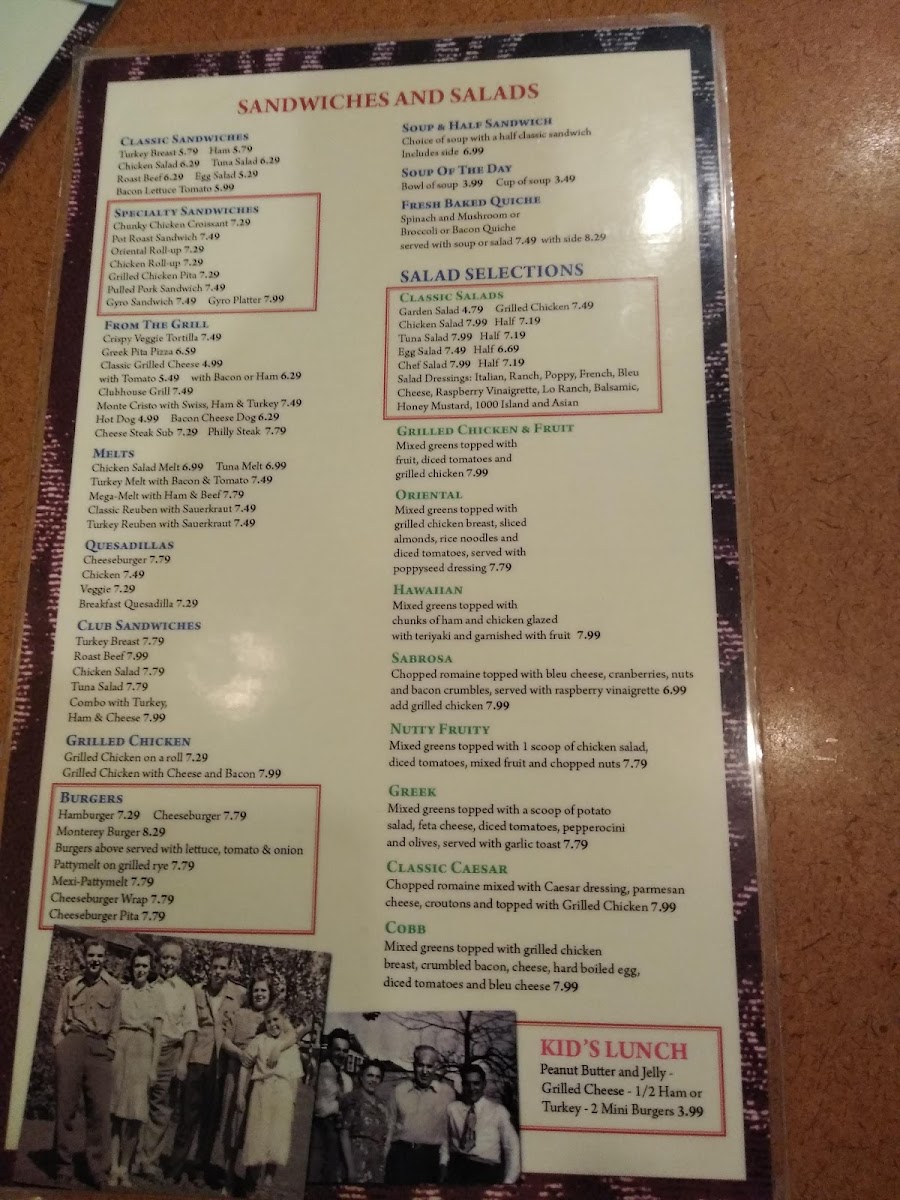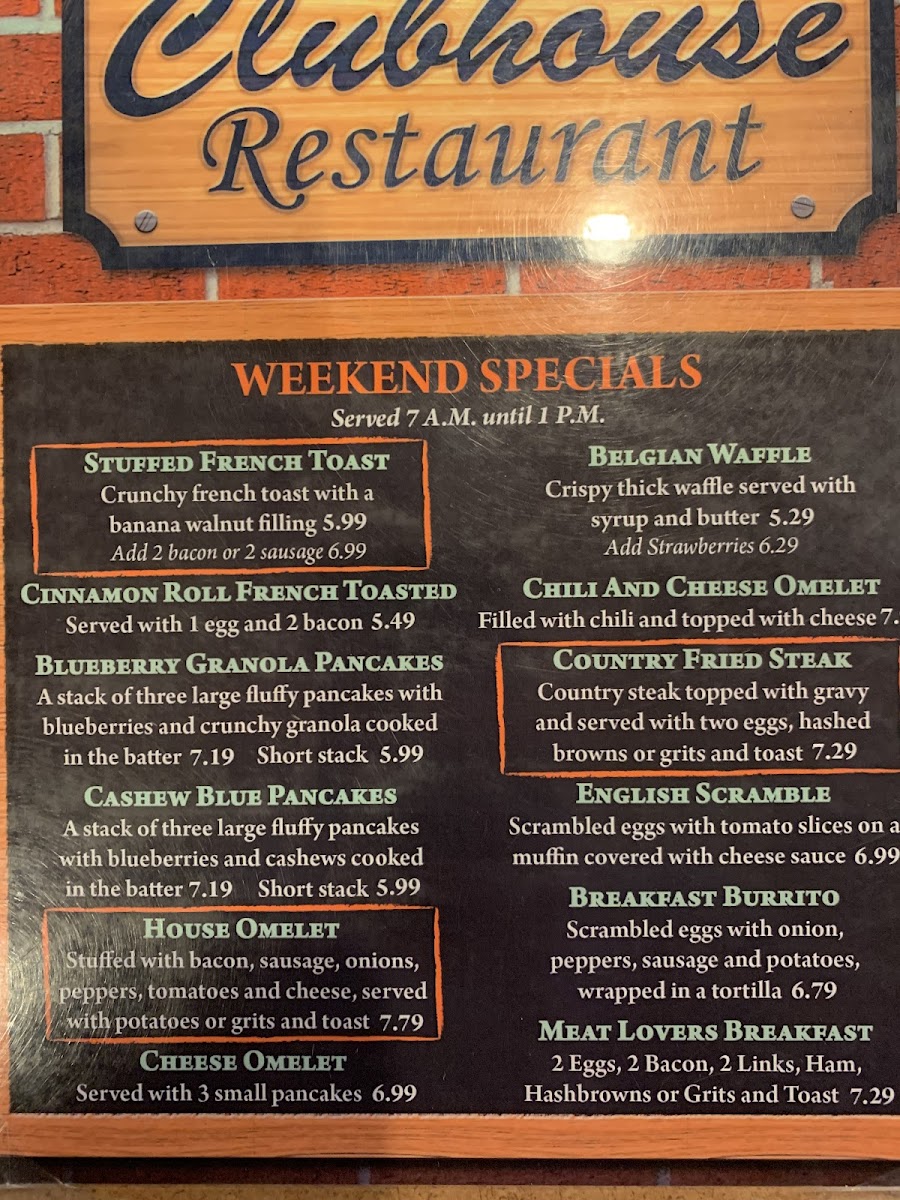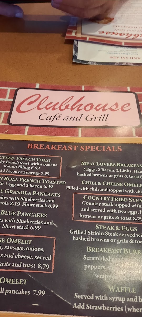 Clubhouse Restaurant Menu